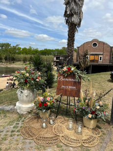 Querían una boda con mucho color. Les propusimos juegos de livings bien cómodos, modernos y a la vez con un dejo rústico que dialogaba con el entorno. Armamos una mesa imperial para los mayores, con una pérgola que aportaba sobra, la cual ambientamos con lámparas de rattan y follajes.
